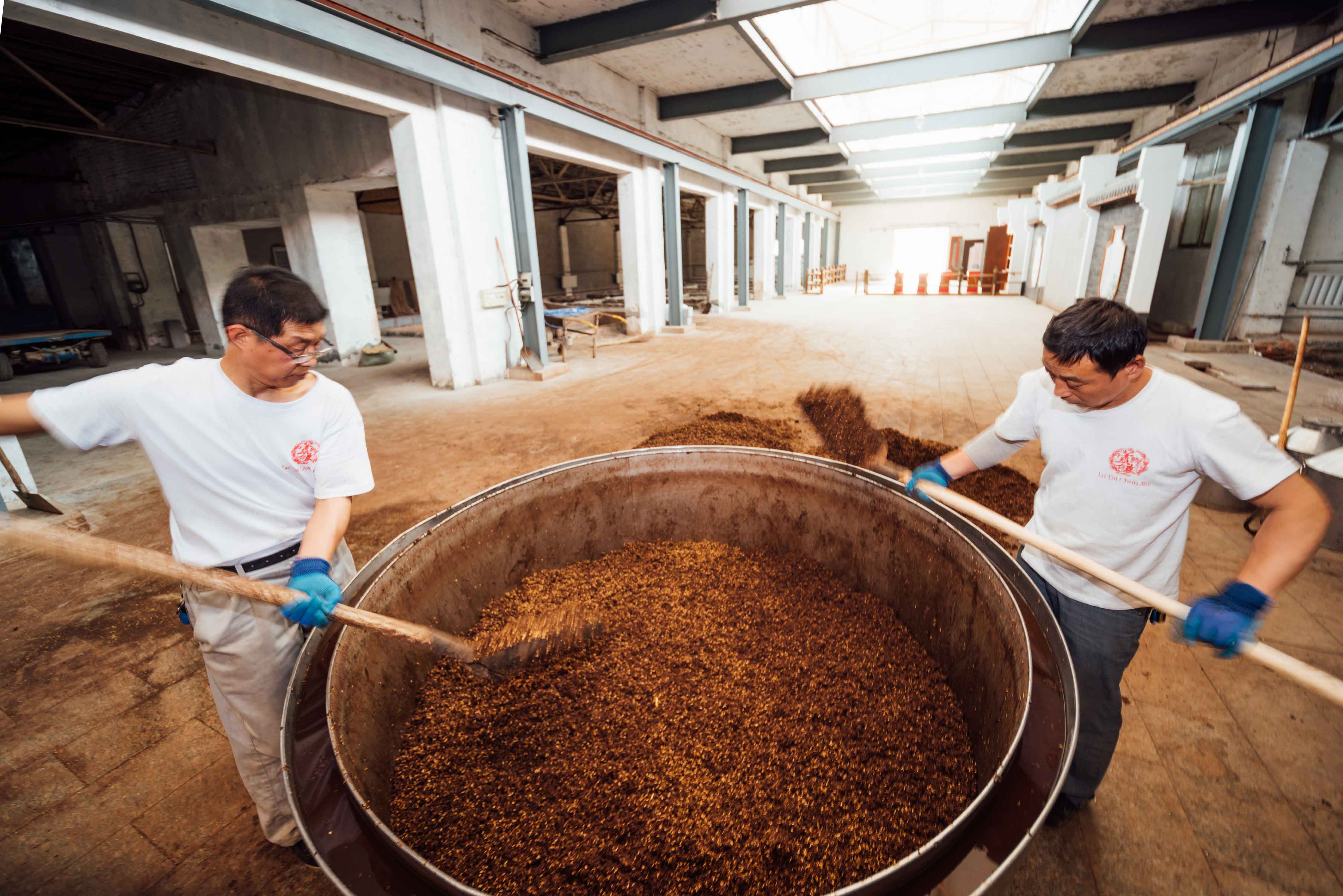 酒醅加入独特的高温曲药。随着酿造轮次,摊晾拌醅,在酿造过程中,总计8次加曲,才能最大化的保障酒的醇厚香气。