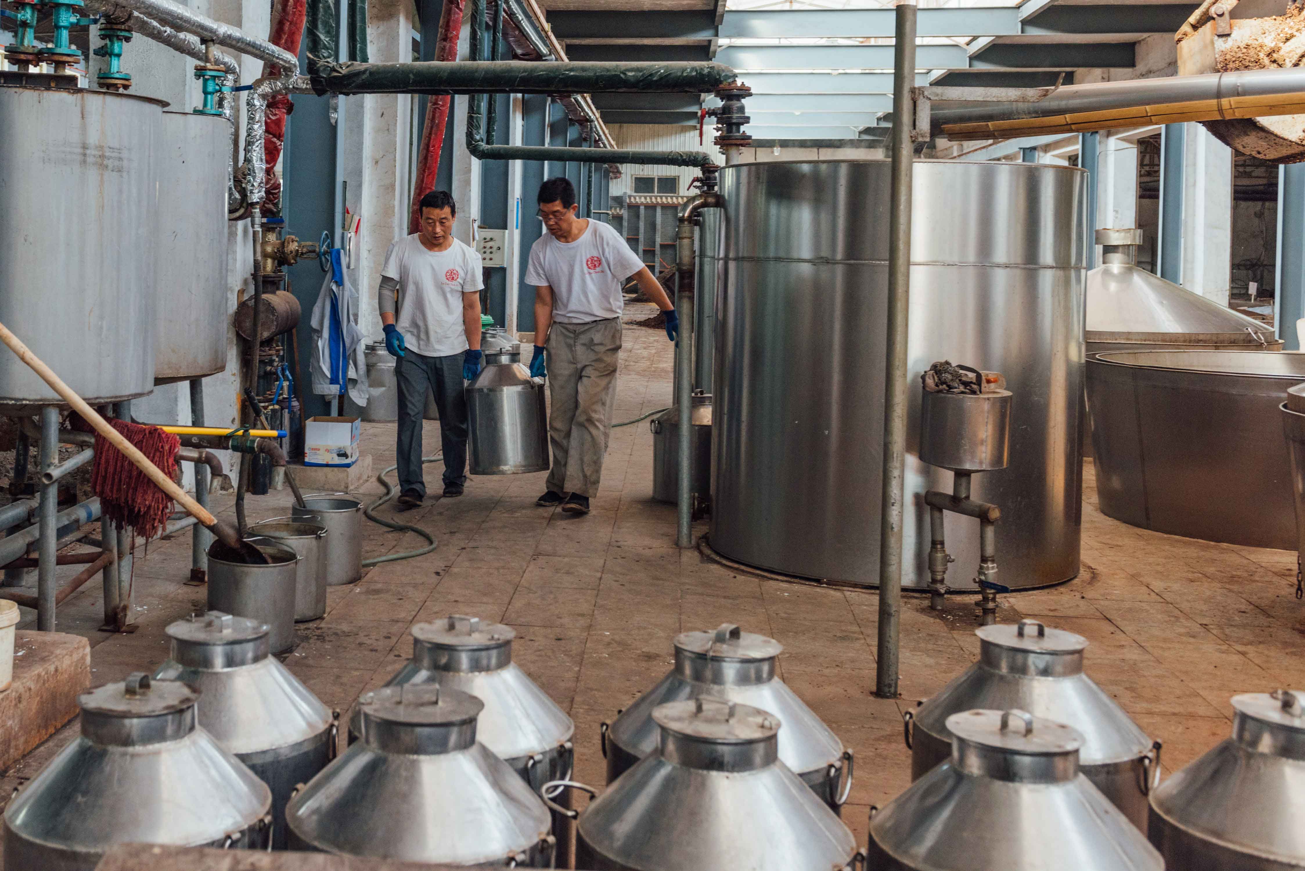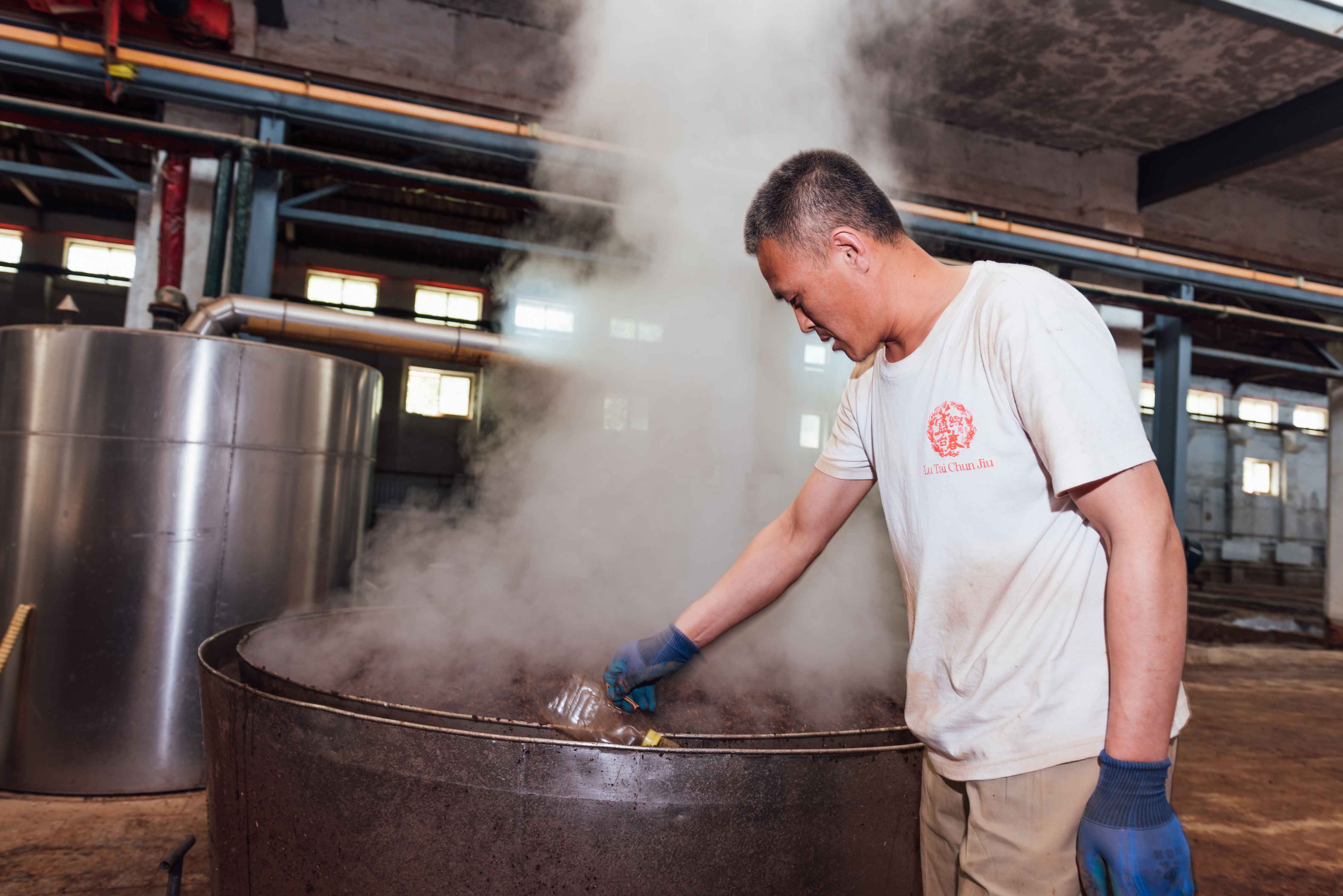 取酒完毕之后再对酒糟进行摊凉、加曲、堆积、下窖、封窖发酵等流程,如此周而复始,共需要经历7次摘酒,经过蒸馏所得的白酒原浆十分珍贵,7次摘酒就如同摘取不同枝头的果实,每一次都有其不同的风味。
