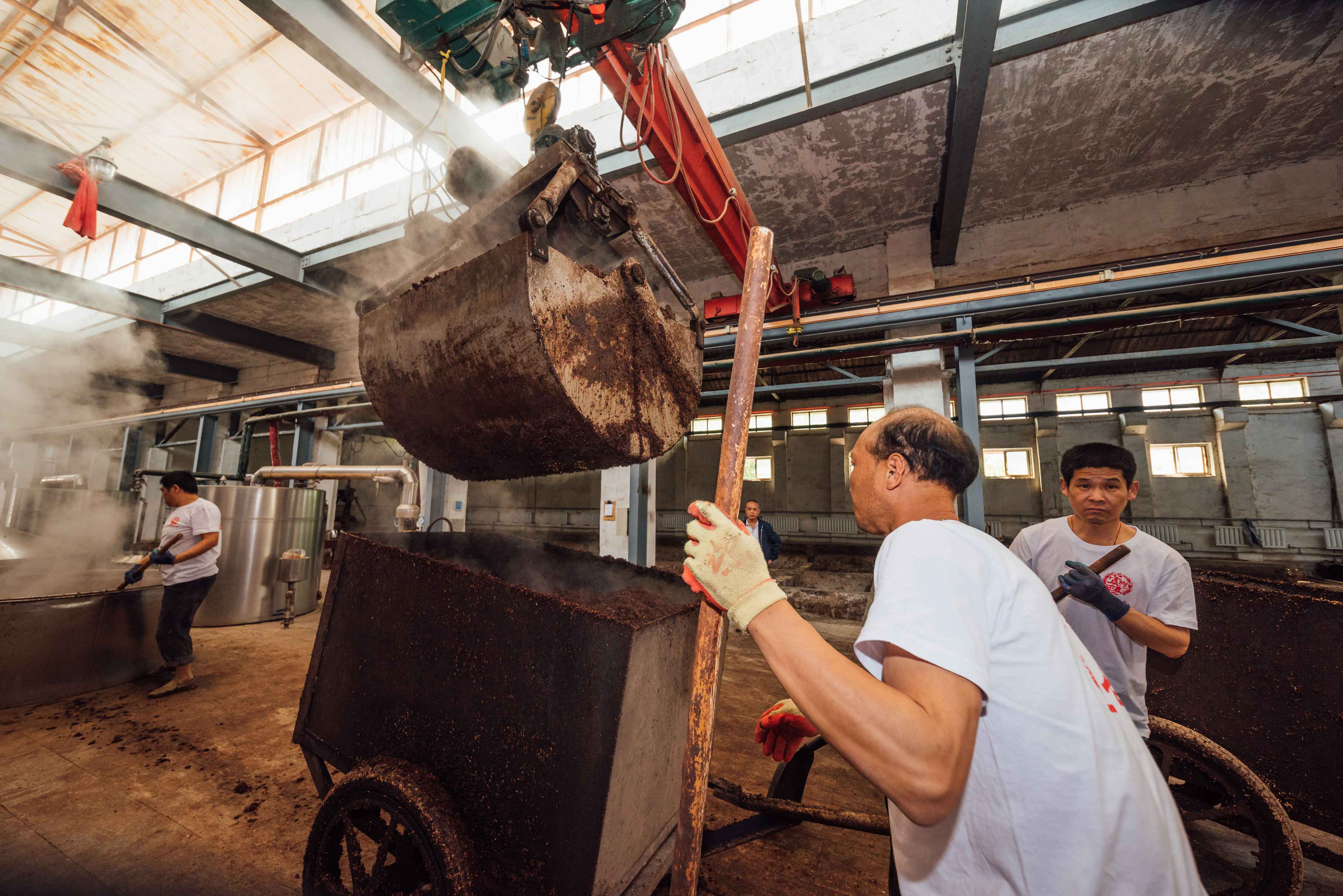 原料需9次蒸煮,要求做到外观蒸透,熟而不黏。